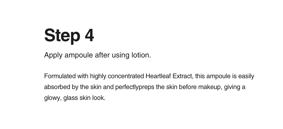 El kit Heartleaf Soothing incluye un tónico, una loción, una ampolla y una almohadilla limpiadora, todos ellos con ingredientes clave de extracto de Houttuynia Cordata.