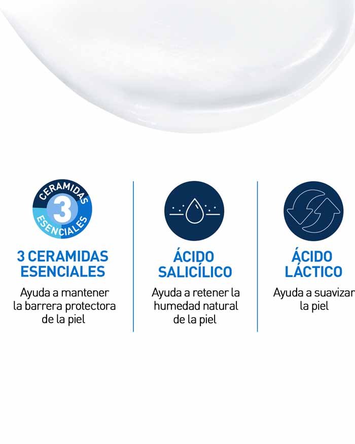 SA Crema Alisadora Anti-rugosidades de CeraVe contiene Urea, Ácido Salicílico y 3 ceramidas esenciales para exfoliar gentilmente la piel, mientras hidrata y ayuda a restaurar la barrera cutánea. Elimina. Textura no pegajosa y no grasa. Libre de fragancias y no comedogénica. Ideal para piel rugosa,seca e irregular.